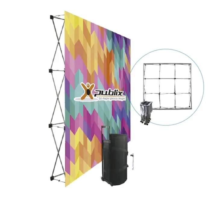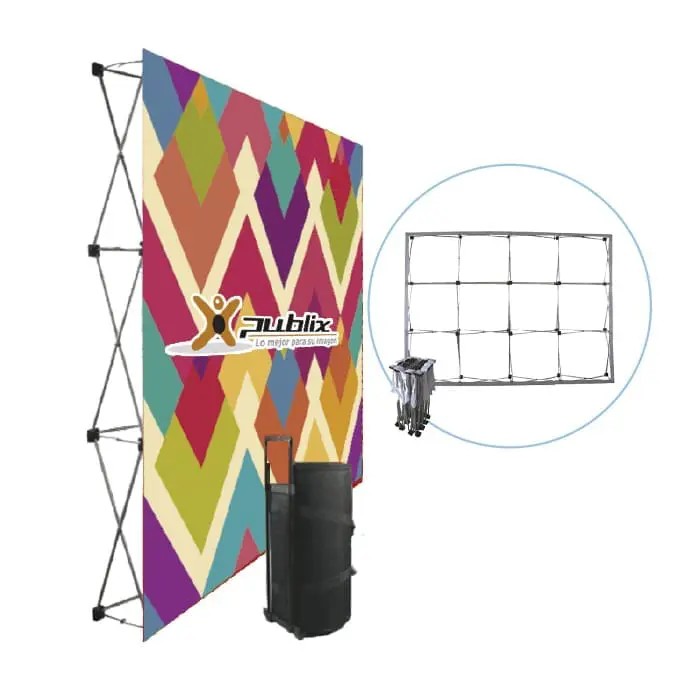 Pared plana con velcro y varillas de aluminio retráctil especial para montajes de stands.